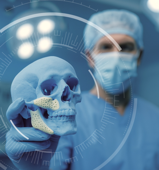 Nicht nur über digitale Visualisierung, sondern auch mit Hilfe von physischen 3D-Modellen, lassen sich, besonders bei komplexen Defekten, optimale Ergebnisse erzielen. Mit unserer langjährigen Erfahrung und der engen Zusammenarbeit in den Abteilungen der Neurochirurgie (NC), der Mund-Kiefer- Gesichtschirurgie (MKG), der plastischen Chirurgie und der Hals-Nasen-Ohren Kliniken (HNO), bieten wir Ihnen passgenaue, schnelle und qualitativ hochwertige Lösungen, die Ihren Patienten bestmöglich versorgen.