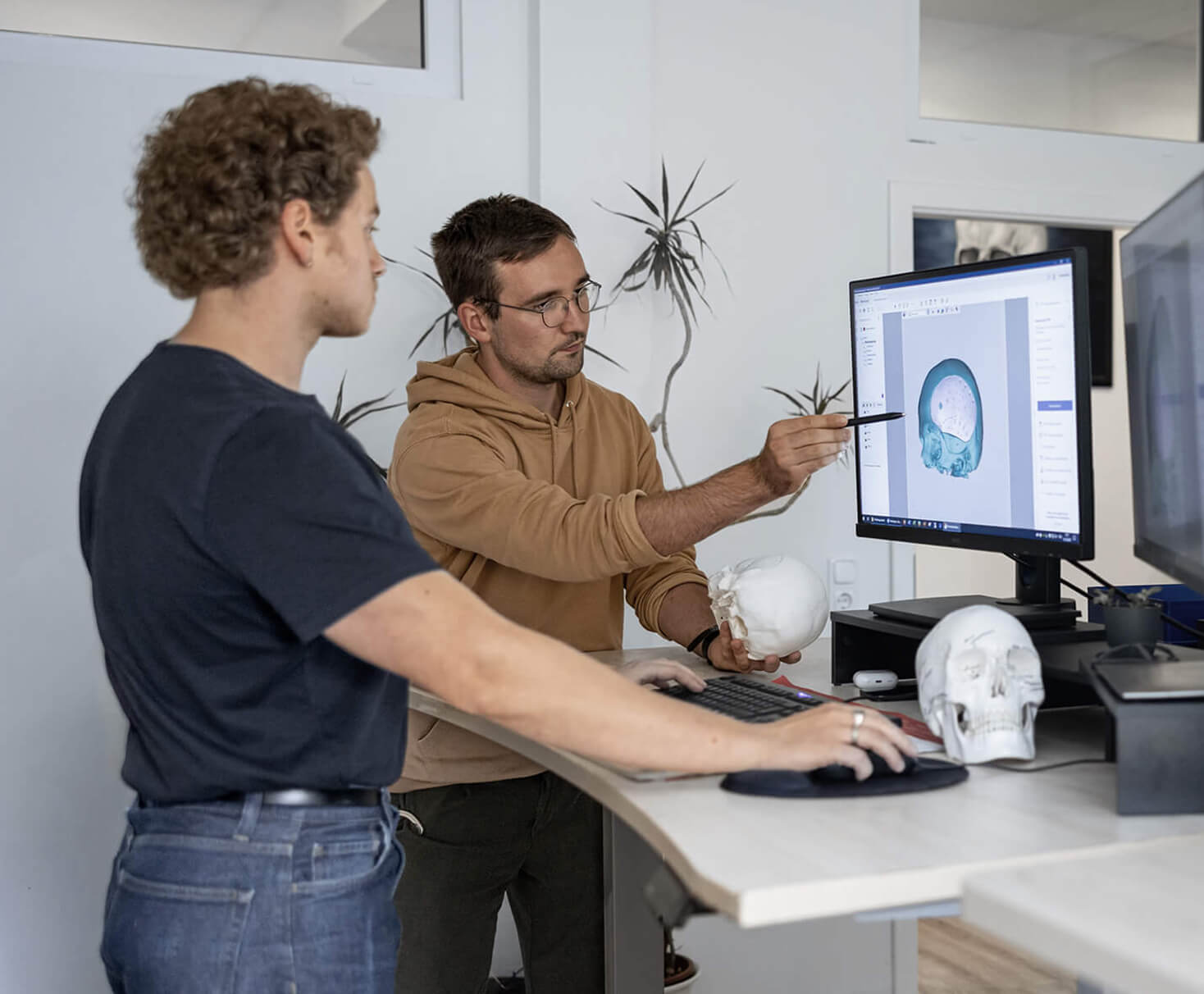 Die Daten der CT-Aufnahme des Patienten werden durch uns aufbereitet und konvertiert, so dass ein virtuelles 3D-Modell vom Kopf des Patienten entsteht.